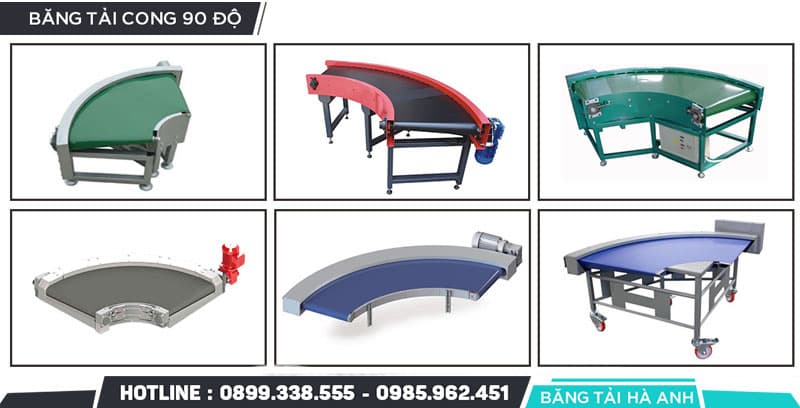 Băng tải cong được phân theo góc uốn, tùy thuộc vào yêu cầu thực tế của mặt bằng sản xuất: