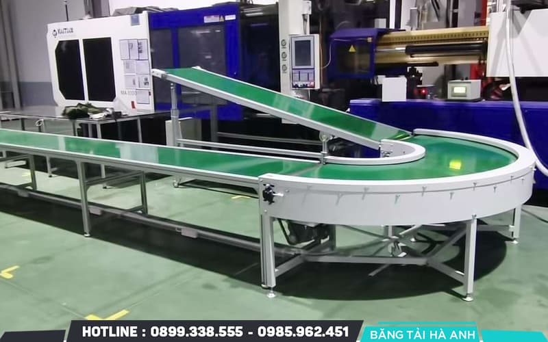 - Chi phí cao hơn băng tải thẳng nếu không tối ưu: Trong cùng kích thước và điều kiện sử dụng, băng tải cong có thể phát sinh chi phí cao hơn do yêu cầu thiết kế riêng, linh kiện đặc thù hoặc không tận dụng được các module tiêu chuẩn.
