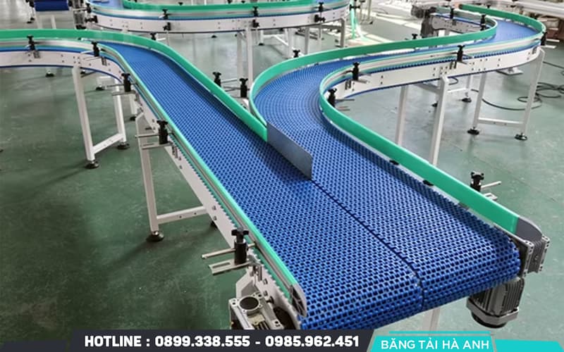- Linh hoạt trong thiết kế và ứng dụng: Có thể tùy biến theo không gian, dạng cong, leo dốc hay chạy nhiều hướng. Phù hợp cho dây chuyền cần vận hành đa dạng.