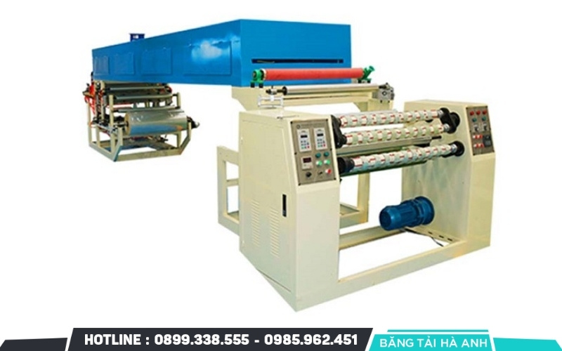 Băng tải vận chuyển có hai vai trò then chốt: Vận chuyển màng ổn định và Kiểm soát lực căng. Hệ thống băng tải được tích hợp cảm biến lực và trục điều khiển tự động để duy trì lực căng ổn định trên màng. Điều này cực kỳ quan trọng để ngăn màng bị nhăn, rách, hoặc biến dạng dưới tác động của nhiệt độ, đảm bảo cuộn băng jumbo cuối cùng đạt tiêu chuẩn chất lượng cao.