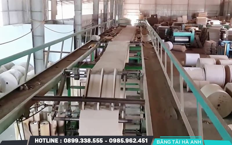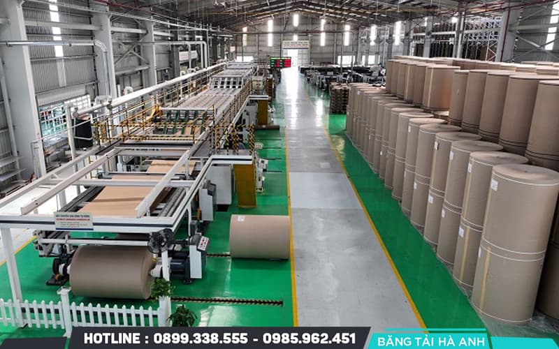 Bìa giấy đã được hình thành và tạo sóng được chuyển vào máy cán khổ chia lằn để cắt ngang. Tiếp theo, bìa giấy đi qua máy cắt thùng carton để cắt thành phẩm thành các phần vuông góc và chính xác.