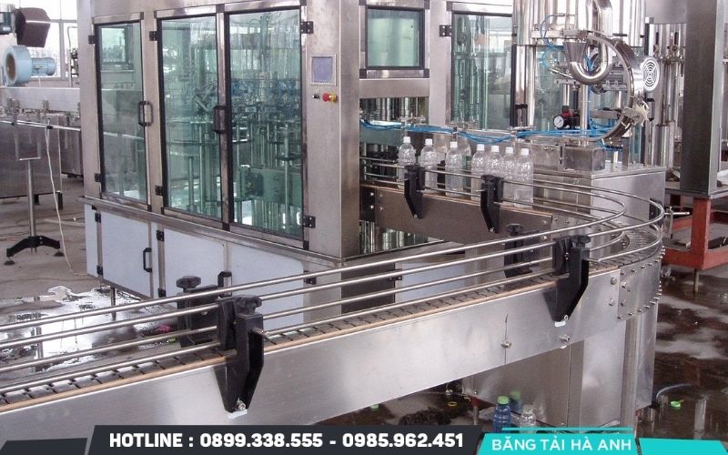 Trong sản xuất chai nhựa, thường sử dụng các loại băng tải chuyên dụng như băng tải xích nhựa, băng tải xích inox, băng tải con lăn và băng tải belt PVC. Mỗi loại được thiết kế để phù hợp với đặc thù sản phẩm và môi trường sản xuất: