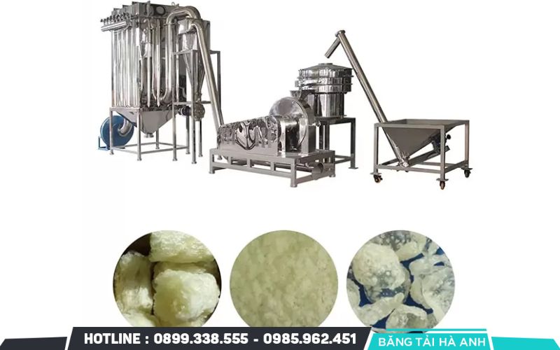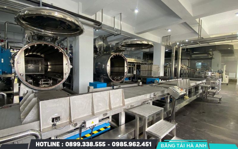 Băng tải vận chuyển kết nối các công đoạn trong dây chuyền, giúp di chuyển nguyên liệu và thành phẩm một cách trơn tru, an toàn. Loại băng tải phổ biến nhất trong dây chuyền sản xuất cháo ăn liền là băng tải PVC hoặc inox, có khả năng chịu nhiệt và chống bám dính tốt.