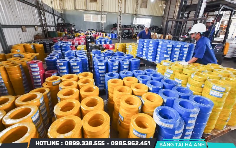 Băng tải PVC phù hợp cho việc di chuyển dây dẫn, vật liệu nhẹ và cuộn cáp có đường kính nhỏ, nhờ bề mặt phẳng, độ ma sát thấp và khả năng chống tĩnh điện. Băng tải con lăn thép hoặc băng tải xích lại phù hợp cho khâu vận chuyển các cuộn cáp thành phẩm nặng, giúp di chuyển êm, hạn chế trượt hoặc bóp méo dây.