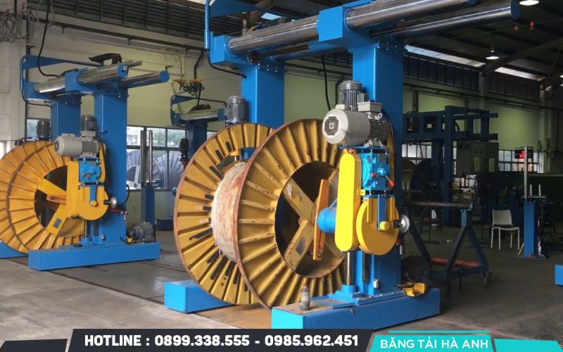 Băng tải là bộ phận trung gian, đảm nhiệm việc vận chuyển dây dẫn, cuộn cáp và nguyên liệu giữa các công đoạn sản xuất. Trong dây chuyền sản xuất dây cáp điện hiện đại, băng tải PVC và băng tải con lăn thép được sử dụng phổ biến nhất.