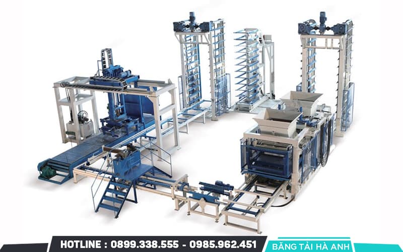 Băng tải gạch: Là một phần không thể thiếu trong dây chuyền, băng tải được sử dụng để vận chuyển các viên gạch từ máy ép đến các máy làm sạch, máy đóng gói và các bước tiếp theo trong quá trình sản xuất.