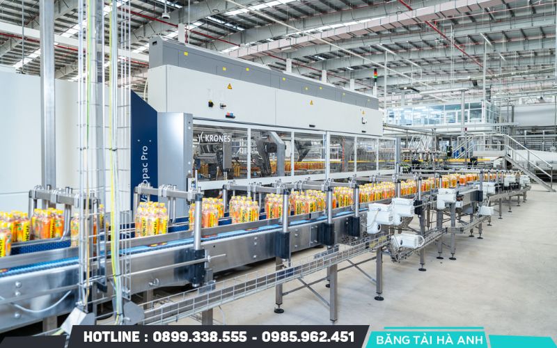Các hệ thống phối liệu tự động giúp kiểm soát tỷ lệ pha trộn chính xác, trong khi thiết bị tiệt trùng bằng nhiệt hoặc tia cực tím đảm bảo tiêu diệt vi sinh vật gây hại. Băng tải inox và băng tải xích nhựa thường được sử dụng để vận chuyển chai, lon giữa các công đoạn, vừa chống gỉ vừa dễ vệ sinh – yếu tố quan trọng trong ngành đồ uống.