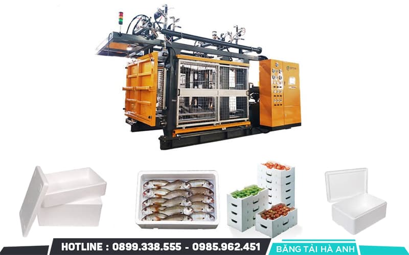 Máy đúc khuôn tự động đảm nhận giai đoạn định hình thùng xốp. Hạt EPS sau khi kích nở được đưa vào khuôn và nén chặt dưới nhiệt độ và áp suất cao. Nhờ khả năng vận hành tự động, máy giúp tiết kiệm nhân công, giảm sai sót và đảm bảo tính đồng nhất của sản phẩm.