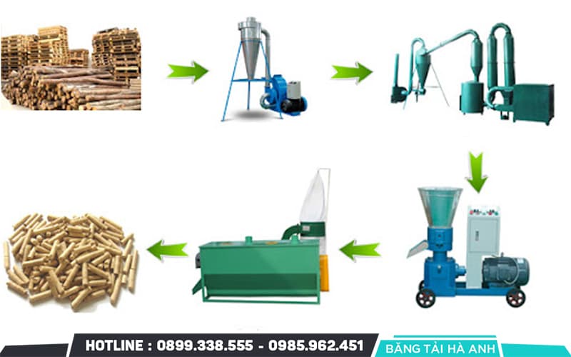 Dây chuyền sản xuất viên nén gỗ bao gồm những thiết bị nào?